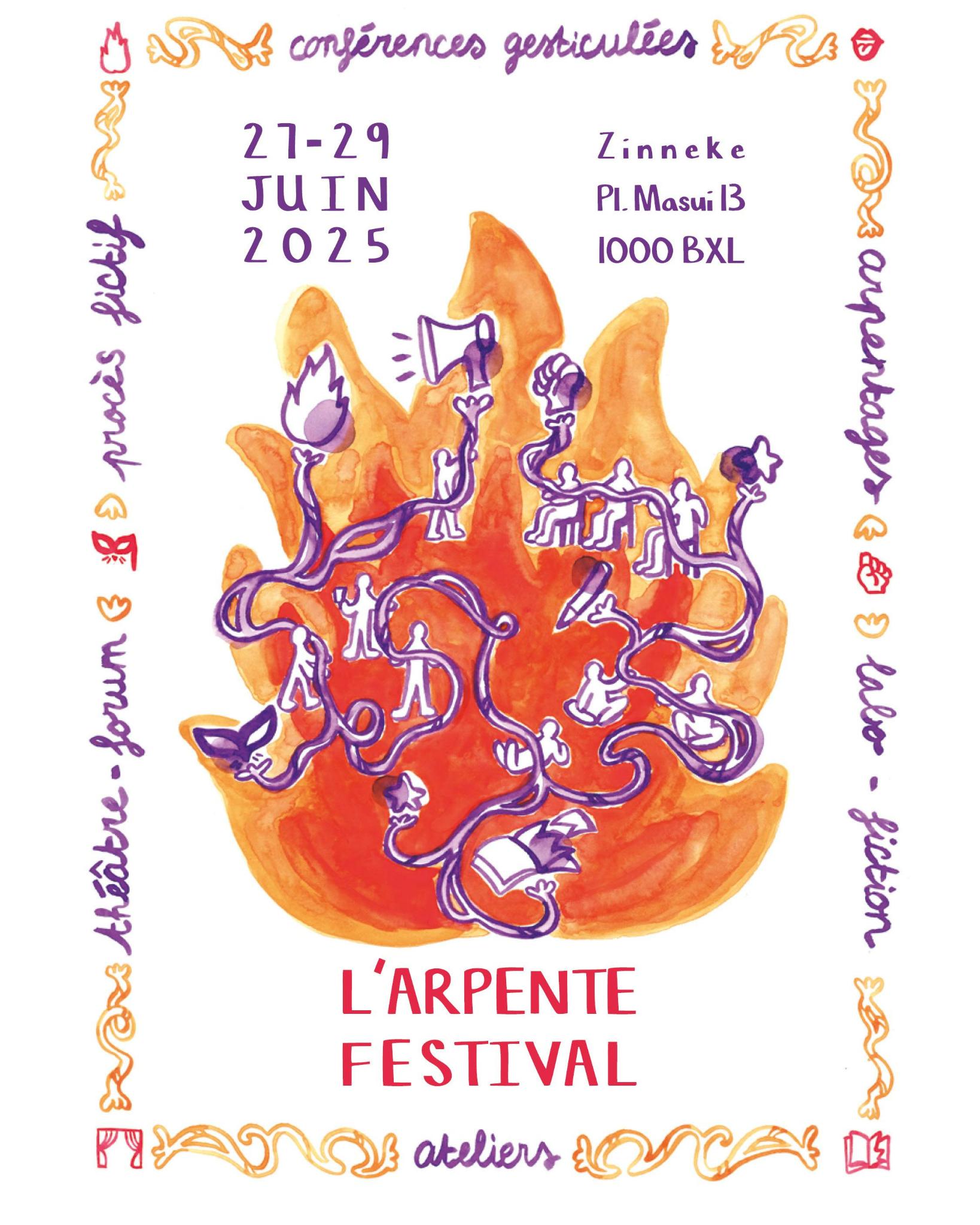 L’arpente collective organise depuis 2023 l’arpente festival (ex-festival d’arpentaGEsticulé) visant à mettre en lumière des vécus et des thématiques peu présentes dans l’espace public au travers d’outils d’éducation populaire.